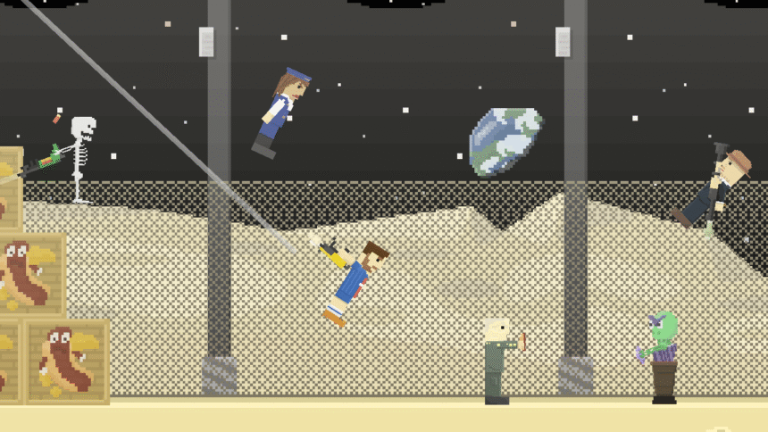 • Unique Physics-Based Movement: Players hop, jump, and lunge instead of walking normally, creating chaotic and funny moments.